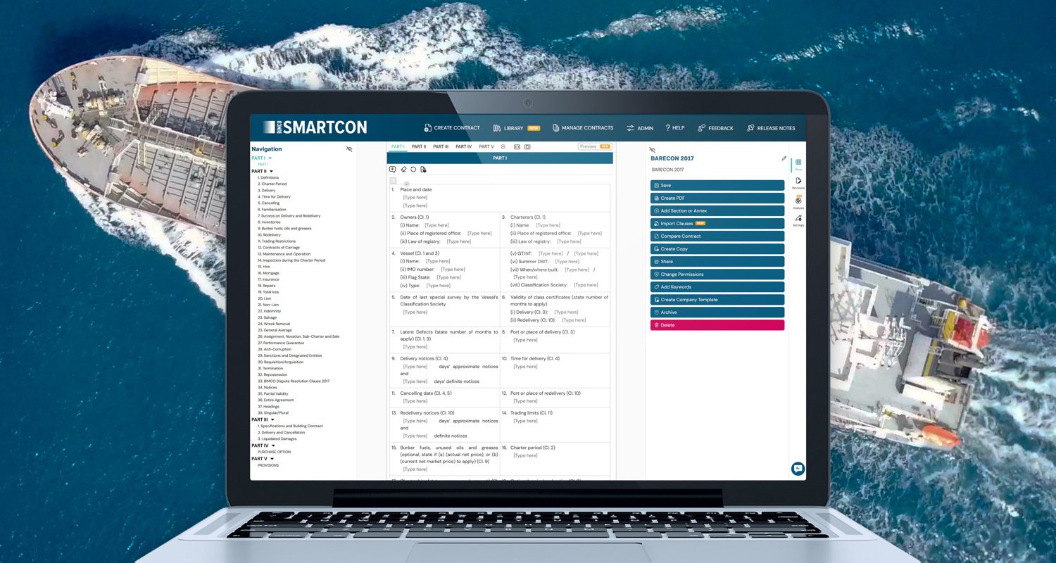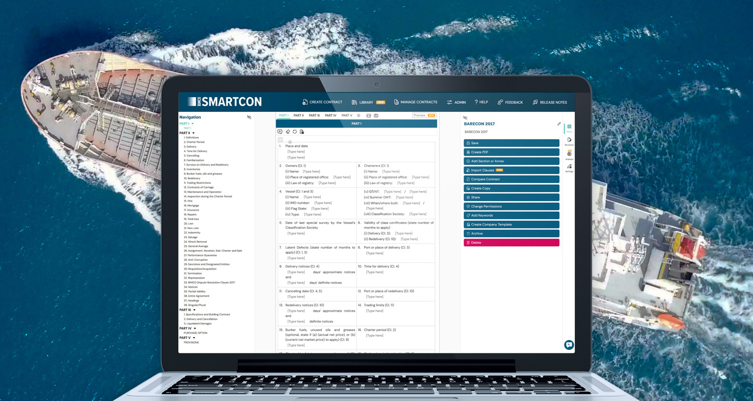 BIMCO SmartCon is a fast, simple and easy approach to working with BIMCO contracts using our online contract editor platform.